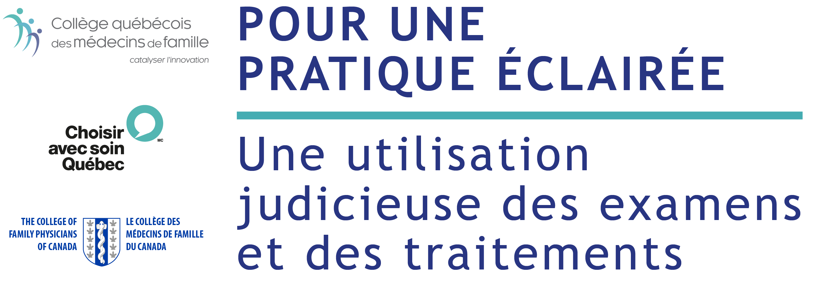 « Pour une pratique éclairée : une utilisation judicieuse des examens et des traitements » est une formation qui a été créée en 2016 dans le but de sensibiliser les médecins de famille du Canada à la surutilisation et au surdiagnostic. Cet atelier interactif permet d’explorer divers outils cliniques et suscite des changements favorables dans la pratique. Au Québec, avec le soutien du Collège québécois des médecins de famille, plus de 70 sessions ont été données depuis 2017, pour un total de plus de 1200 participantes et participants.